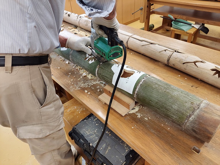 今年7回目の竹の加工作業を実施(2024/08/25) ツイート 今年7回目の「越後みしま竹あかり街道」の作業を実施ました。暑い中での作業でしたが、2メートルのデザイン竹灯籠、各会場案内灯籠の紙はがし、浄福寺で使用するタイトル竹灯籠、デザイン竹灯籠タワーの準備などの作成に汗を流しました。 今年の「越後みしま竹あかり街道」の開催日は2024/10/26(土)です。詳細の内容については現在検討中です。今年も通常通りの開催を予定していますので多くの参加をお願いいたします。 #越後みしま竹あかり街道