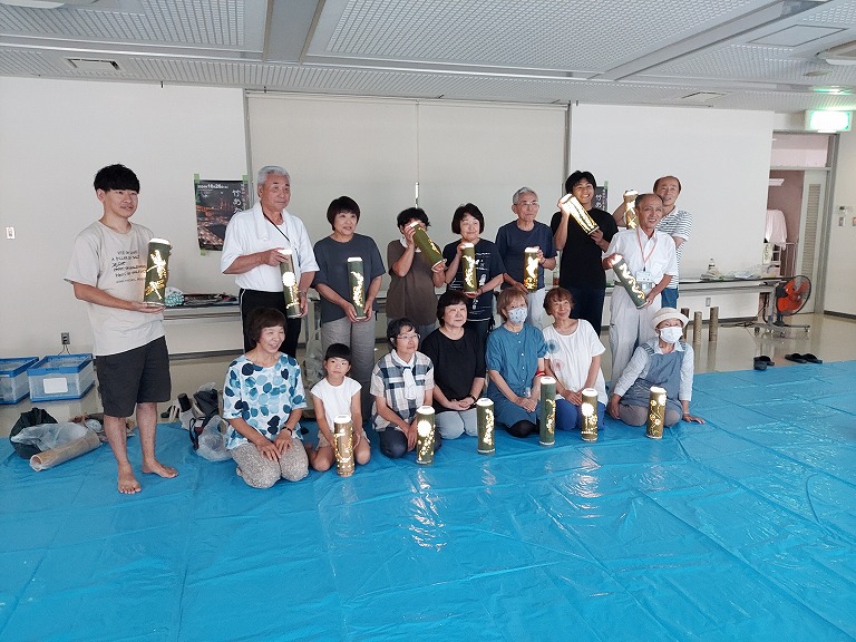 川口コミセン 竹灯籠づくりのワークショップに参加(2024/08/21) ツイート 川口コミュニティセンターで開催された竹灯籠づくりワークショップに参加しました。竹に穴をあけ、思い思いの灯籠を作りました。地域の方々と交流しながら、夏の夜を彩る灯籠作りは貴重な体験となりました。完成した灯籠にキャンドルを灯し、浮かび上がる様子は、とても幻想的で美しく皆さんたいへん満足して帰られました。 今年の「越後みしま 竹あかり街道 2024」の 開催日 2024/10/26 (土) です。詳細の内容については現在検討中です。